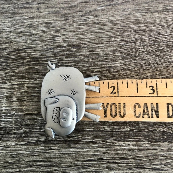 This adorable little pig looks like he is running while you walk. Two spots on the back where the legs attach to. Signed JJ on the back.