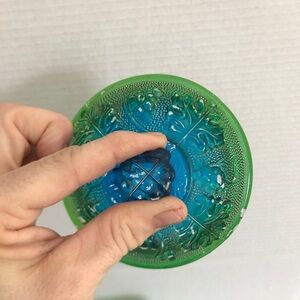 Vtg Jeanette Glass Blue Green Footed Dish