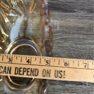 Beautiful marigold carnival glass dish with scalloped edges. Perfect for decor or serving. Shaped like a gondola. Would look very elegant as a centrepiece down the middle of a long table at a fancy dinner.