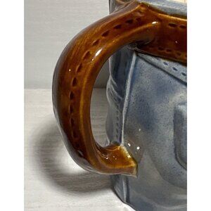 Vtg Jeans Shaped Mug Planter Belt Handle 1977 By RON Molds Blue & Brown
