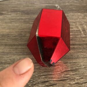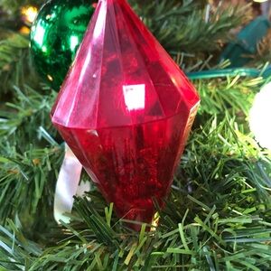 Red and green ornaments that open and you can add trinkets or treasured keepsakes inside. Can also use without putting items inside. Date to the 50s or 60s.