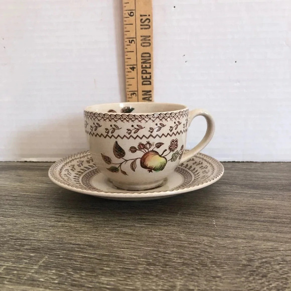 Made in England by Johnson Brothers. Pattern name is fruit sampler.