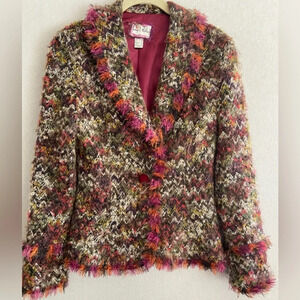 Vintage Joseph Ribkoff tweed Mohair blend multicolour one button blazer jacket Sz 8