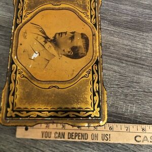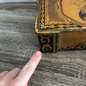 Features a portrait of King Edward VIII on the lid. Hinged opening, silver tone interior and gold tone exterior with black details. Would look wonderful displayed with other Royal Family Memorabilia.