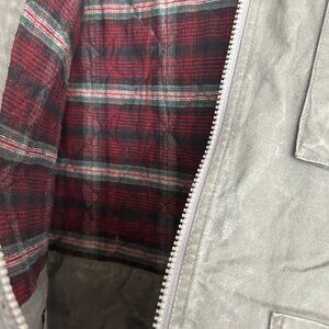 Classic vintage L.L. Bean women’s XL vest in a faded khaki color with plaid blanket lining for warmth. Designed with outdoor adventures in mind, this vest offers both utility and comfort.