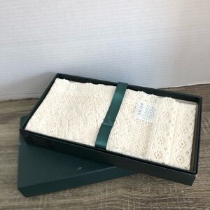 Two boxes of lovely detailed lace napkins designed by Laura Ashley. They are from different times based on the logo on the boxes. Still appear to have identical napkins inside.