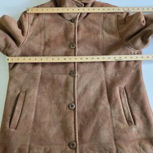 London Fog Coat Women XXL Beige Faux Suede Shearling Embroidery Ingrid LF2328382