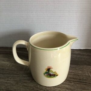 Charming cream pitcher featuring a fox hunting scene. Perfect for adding a touch of elegance to your table. Made in England by Lord Nelson. I believe this is an older pattern (30’s or so) but if you know please let me know. Pattern name may be: BCM.