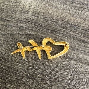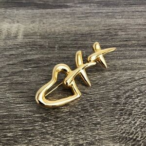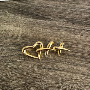 Goldtone colour. Not marked- likely costume jewelry, unknown manufacturer. Perfect addition to any Valentines Day outfit!