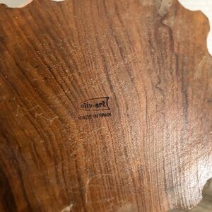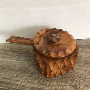 Good preloved condition- some wear to the base of the dish and the handle of the knife is worn a bit but would come to life with a coat of butcher block oil. There’s one spot that is a bit lighter, I don’t know if that is a repair after or was done during the manufacturing process. Blends well, not noticeable which makes me think it was the latter.