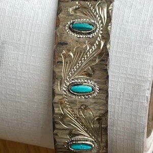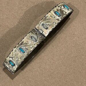 Vtg. MEXICO 4 Panel Cuff Bracelet TURQUOISE INLAYS Artisan MMS and Eagle