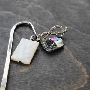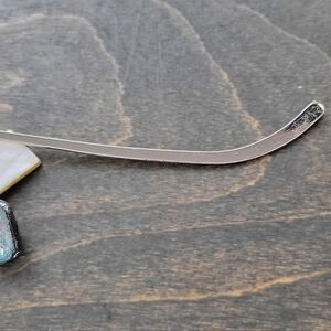• Abalone, mother of pearl, and silver tone (likely silver plated) treble clef dangling charms
