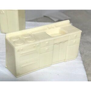Vtg Marx Kitchen Dollhouse Furniture Set Cream Fridge Table Chairs Counter Sink