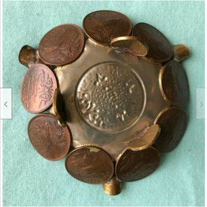 Vtg Mayan Sun God Mexican Metal Ash Tray Centavos 1950s 60s 70s Coins