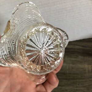 Charming vintage glass basket with intricate Basketweave pattern. Perfect for decor or collection. Hand blown handle I believe as there are bubbles in the glass.