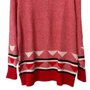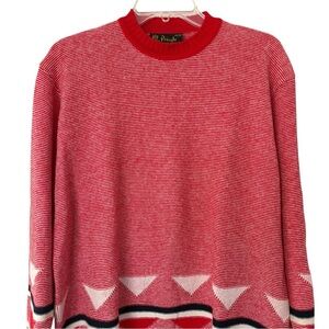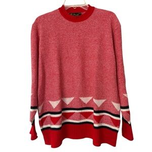 Vtg Mod Striped Geometric Wool Sweater Sz Large Red 70s 80s Pringle of Scotland