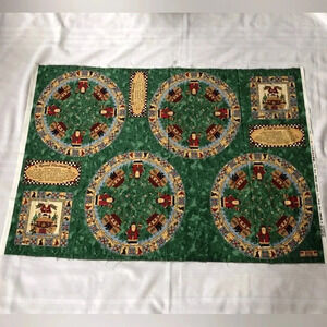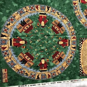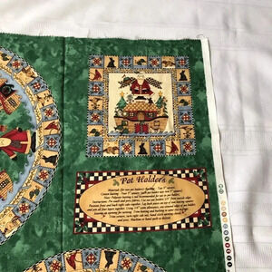 Cut out and sew together holiday themed fabric. You can make the suggested placemats and pot holders or a pillow or use the fabric as an appliqué. Variety of uses!