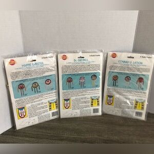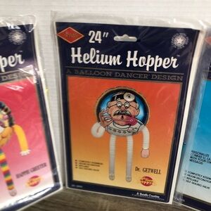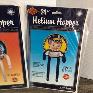 Dr. Getwell the doctor balloon, Conrad U. Lations a messenger boy, and the happie greeter a giant smiley face with happy birthday written on the top. Dated late 1980’s.