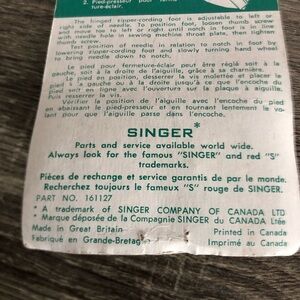 Singer zipper-cording foot in silver. Ideal for sewing projects involving zippers.