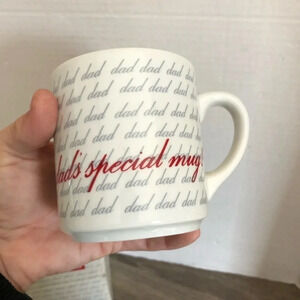 Vintage likely dates to the 1980’s or so, ceramic mug and necktie. Cute little mug that reads: dads special mug and ‘dad’ throughout.