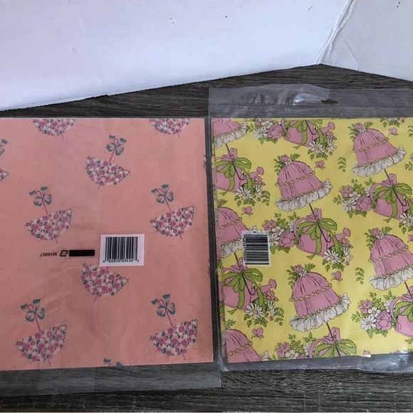 Bundle of six sealed new old stock gift wrap. One even comes with a bow (albeit a very severely squished bow, but a bow none the less!). Very kitchy graphics.