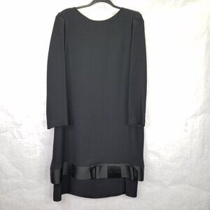 Vtg Nat Kaplan Couture Shift Dress 14 Black Long Sleeve Layered Ribbon Bow 80's