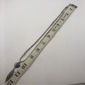 Vtg Navajo Sterling & Turquoise & Feather Pendant Liquid Silver Chain 20” + 2.5”