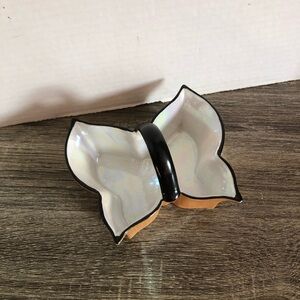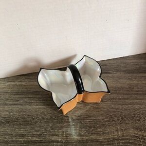 Hand painted porcelain butterfly shaped lustre ware dish with handle. Made by Noritake in Japan.