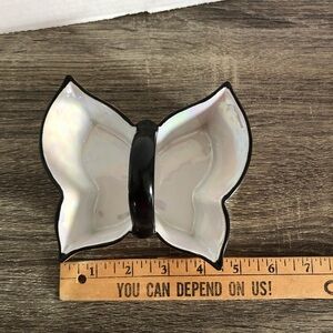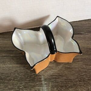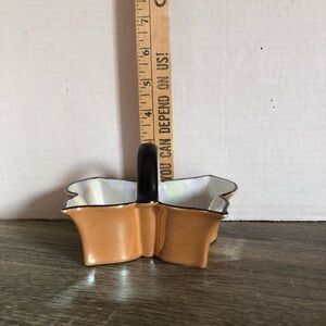 Hand painted porcelain butterfly shaped lustre ware dish with handle. Made by Noritake in Japan.