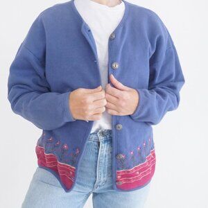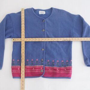 Vtg Northern Reflections Blue Embroidered Floral Button-Up Cardigan Sweater L