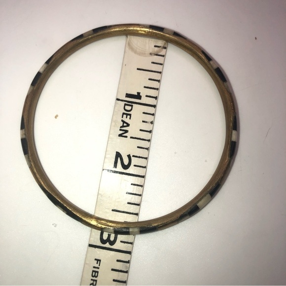 Vtg Onyx & Bone Panel Inlay Brass Bangle 8” / 2.6” Diameter