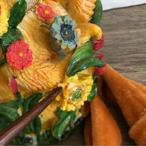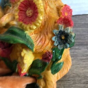 Delight in this charming orange cat figurine, adorned with colourful floral accents. Perfect for cat lovers and collectors alike.