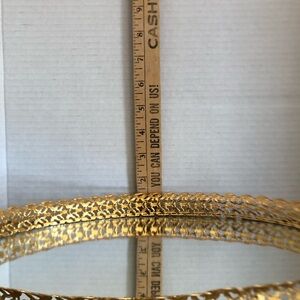 Elegant gold tone metal tray with intricate lace design. Ideal for dressing up a side table or vanity/dresser!