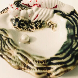 Vtg Oyster Shell Ashtray with Lobster Pearl Dish Japan Trinket Dish