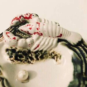 This dish is pre-owned and in used condition. It has paint wear especially on the lobster. There are some marks and wear on it from age. Please see all photos for exact item.