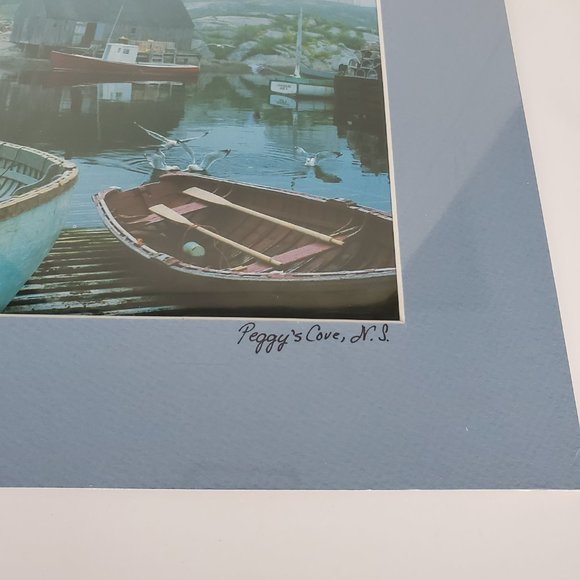 Vtg Peggy's Cove Nova Scotia Photo Art Print Fisherman Boats Oceanic Waterfront