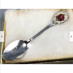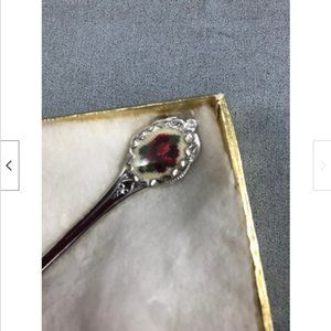 Vtg Petit Point Embroidered Red Rose Bawlf Silvery Teaspoon Collector Spoon 3.5"