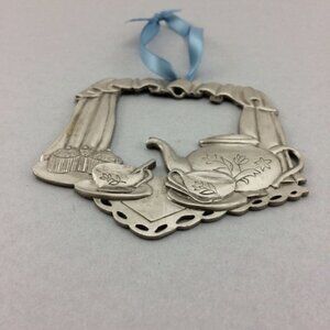 Vtg Pewter Ornament Teapot Scene Lindsay Claire Designs Signed LCD Christmas