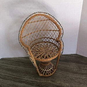 Lovely MCM hand woven high back peacock chair plant stand. Two tone woven wood makes this one extra special.