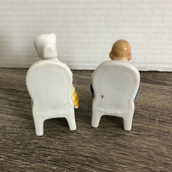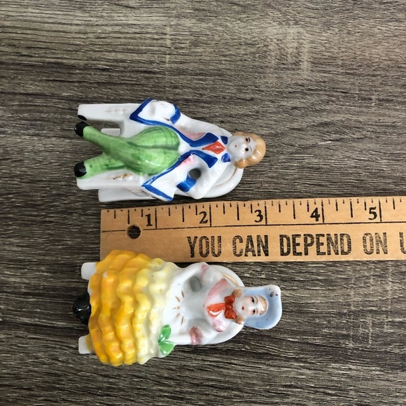 Cute porcelain figurines. One is a man the other a woman both dressed in colonial attire.