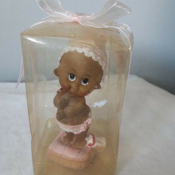 Vtg RESIN Baby Shower Cake Topper Baby girl Figurine soother SATIN HAT