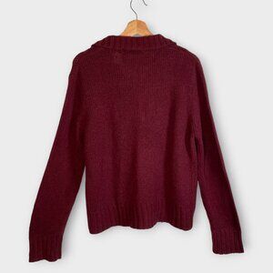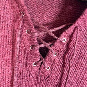 Vtg R&R Sweater LARGE Maroon Lace Up Front Wool Blend Cabincore