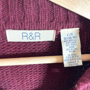 Great condition! No pilling. No flaws. Vtg R&R Sweater LARGE Maroon Lace Up Front Wool Blend Cabincore. Please see measurements on size card to help ensure fit. Thanks for looking!