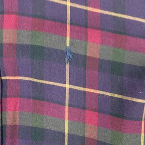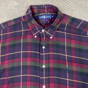 Vtg Ralph Lauren Lightweight Flannel Shirt Men's XL Purple Green Red Button Down