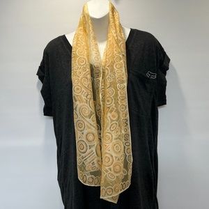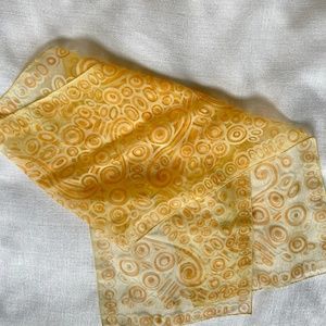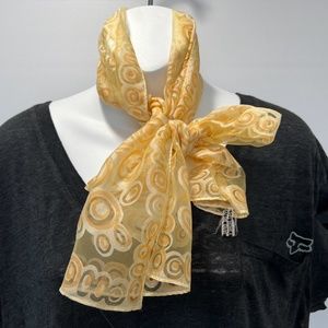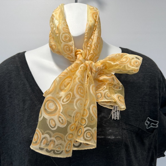 Vtg Rectangle Scarf Nylon Circles Yellow Orange See Thru 70s Ponytail