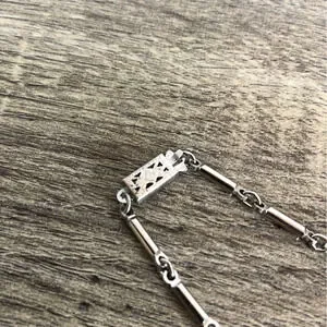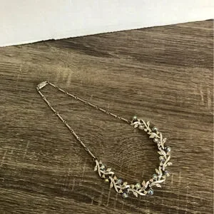 Lovely vintage necklace with a leaf sort of pattern intermixed with rhinestones. Ornate box clasp.