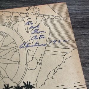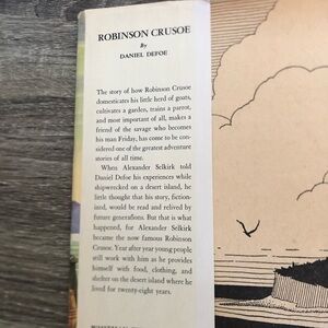 Illustrated book featuring Robinson Crusoe’s adventures on a deserted island. Dust cover included. Dates to the 50’s, although the exact date is not printed in the book.