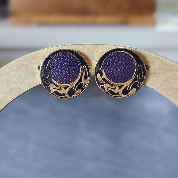 Vtg Roccoco© gold tone and textured two-tone purple circle studs