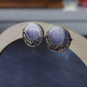 Vtg Roccoco© gold tone and textured two-tone purple circle studs