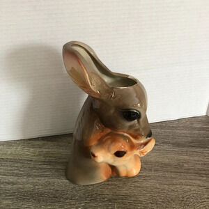 Lovely MCM hand painted planter made by Royal Copley. This doe and fawn planter can also be used as a vase or just shelf decor.